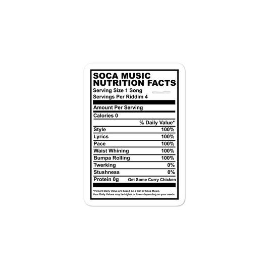Soca Music Nutrition Facts Bubble-free stickers